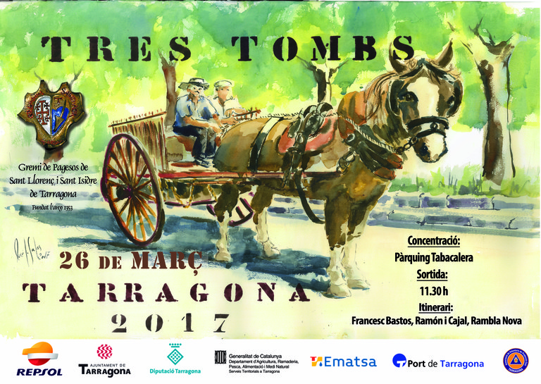 Diumenge 26 de març la nostra ciutat es tornarà a omplir de carros, carretes, cavalls i ponis , procedents de diferents indrets de Catalunya, amb motiu de la celebració de la tradicional Festa dels tres tombs que està organitzada pel Gremi de Pagesos de Sant Llorenç i Sant Isidre de Tarragona.