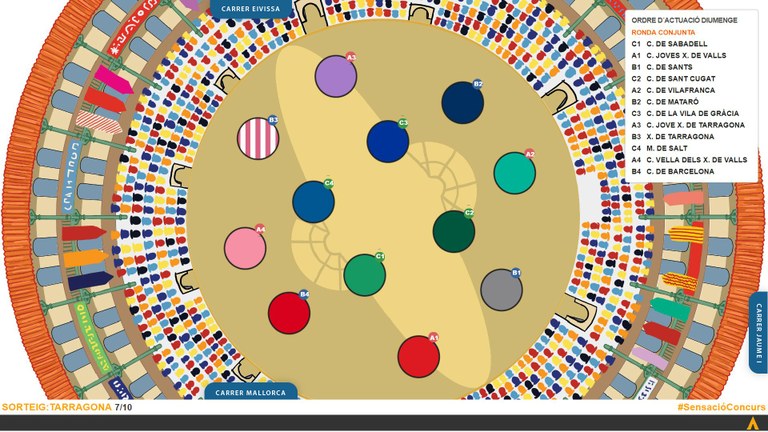 Les 42 colles que participaran en la XXVII edició del Concurs de Castells de Tarragona ja coneixen l'ordre en què actuaran i la seva col·locació a plaça. En un acte celebrat dissabte al matí a l'Antiga Audiència de Tarragona, membres de la canalla de les colles amfitriones Nois de la Torre, Xiquets del Serrallo, Castellers de S Pere i S Pau, Xiquets de Tarragona i Colla Jove Xiquets de Tarragona, han estat les mans innocents que han servit per sortejar la col·locació de cada colla, tant per la plaça del Castell de Torredembarra com per la Tarraco Arena Plaça (TAP), i l'ordre d'actuació.