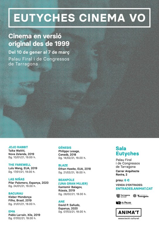 Tarragona Turisme ha arribat a un acord amb l’Associació Cultural Anima’t i el Palau Firal i de Congressos de Tarragona per mantenir la programació estable de cinema en versió original que des de 1999 ofereix Anima’t a Tarragona. La programació es trasllada a la Sala Eutyches del Palau de Congressos i en conseqüència passa a dir-se Eutyches Cinema VO. Les sessions tindran lloc a l’esmentat espai del 10 de gener al 7 de març tots els diumenges.
