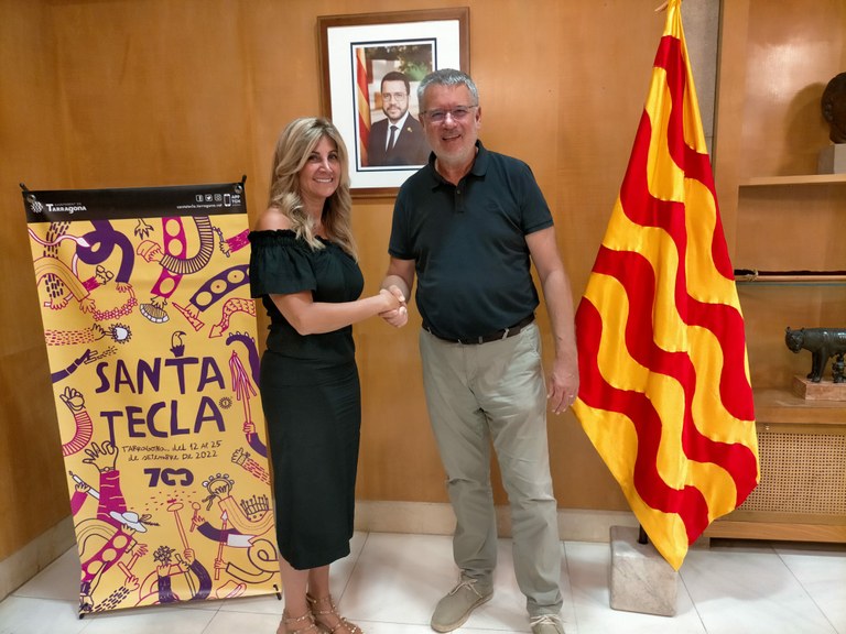 L’alcalde de Tarragona, Pau Ricomà i, la directora de màrqueting i copropietaria de Bodegas Yzaguirre, Carmen Salla, han signat un conveni a partir del qual s'incorpora la coneguda marca de vermut com a patrocinador oficial de la celebració dels 700 anys de l'Arribada del Braç de Santa Tecla.