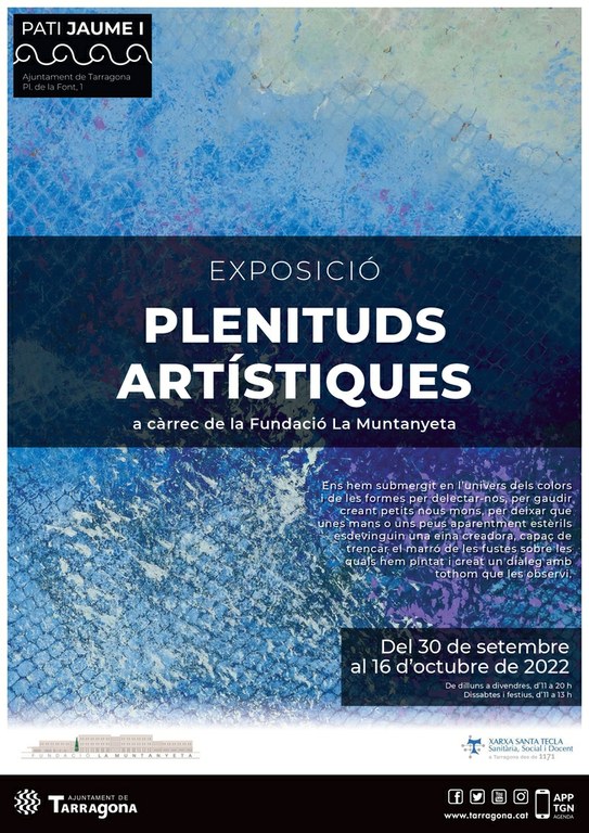El Pati Jaume I acollirà, a partir d’aquest divendres, l’exposició "Plenituds artístiques", una iniciativa de la Fundació La Muntanyeta. Es tracta d’una mostra d’art que compta amb una trentena d’obres creades de manera conjunta per les persones amb paràlisi cerebral i els professionals de l’entitat.