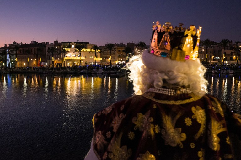- A les 18.15 h, Arribada per via marítima a la ciutat de Ses Majestats els Reis d'Orient -Melcior, Gaspar i Baltasar- des de terres de l’Orient, que és saludada per les sirenes dels vaixells i barques del port, així com per les 21 salves pirotècniques en homenatge a les magnànimes personalitats.