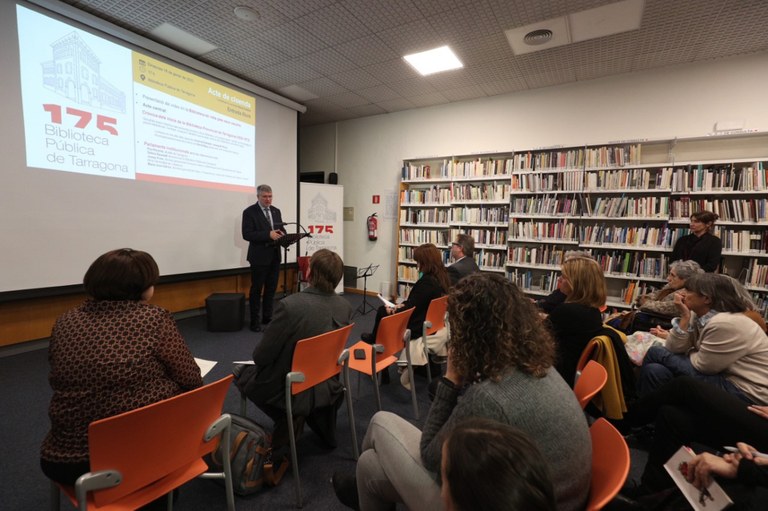 En el decurs de l’acte de cloenda de la commemoració dels 175 anys d’inauguració de la Biblioteca Pública de Tarragona, l’Ajuntament de Tarragona, el Departament de Cultura de la Generalitat i el Ministeri de Cultura i Esport han acordar la creació d’una comissió per estudiar el futur de la Biblioteca Pública de l’Estat de Tarragona en el marc de la política bibliotecària general.