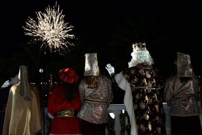 L'arribada de Ses Majestats al Serrallo serà a les 18.15 h, on els vaixells i barques del Port estaran esperant per saludar-los, a més de 21 salves pirotècniques en honor seu. Tot seguit, tindrà lloc un parlament de benvinguda a càrrec de la consellera de Cultura i Festes, Sandra Ramos, i una salutació per part del Rei Ros Gaspar, des del balcó del Teatret del Serrallo, en representació dels Reis d’Orient. Seguidament, hi haurà focs artificials de benvinguda i la comitiva es traslladarà fins al punt d’inici de la cavalcada, a la plaça dels Infants i al carrer Reial.