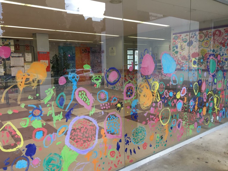 Puntualment, treballem amb els/les alumnes la pintura mural dins l’espai escolar, ja que creiem que l’ambientació dels espais és molt important per aportar vincle, ordre, estètica i afavorir un ambient amable. Els temes sempre estan lligats al projecte i són realitzats i dissenyats pels alumnes.