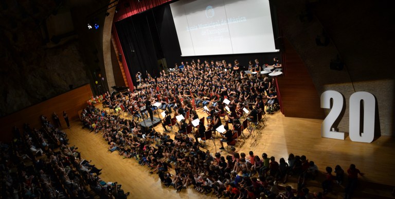Seguidament l'Aula de Música Tradicional va tocar un tema de la pel·lícula Up i van obrir el torn de la part instrumental. Una orquestra amb uns 100 alumnes va tocar el tema dels Increïbles. I per acabar es va estrenar una obra composada pel professor del centre Guillem Anguera per celebrar els 20 anys. En aquest ocasió els alumnes més grans van ser els encarregats de la part instrumental i tota la resta d'alumnat van participar cantant aquesta peça. Va ser un moment màgic, ple de les veus i les diferents sonoritats instrumentals que van omplir tota la sala i que va posar el punt i final a aquesta celebració amb la il·lusió de fer-ne molts més!