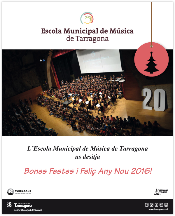 Com cada any, i després de tots els concerts i audicions trimestrals, l'Escola Municipal de Música us desitja molt Bones Festes i un Bon Any Nou.