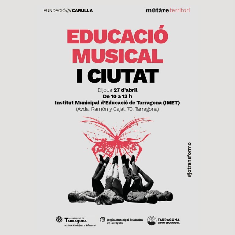 Les entitats i les persones especialistes en educació musical dels centres docents de la ciutat de Tarragona tindran l’oportunitat de participar en aquesta iniciativa d’entrada lliure i gratuïta que tindrà lloc a l’Institut Municipal d’Educació de Tarragona (IMET).