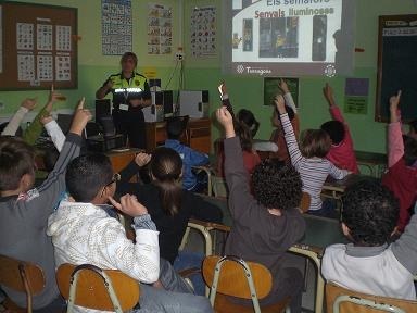 La munió de braços aixecats, que il·luminen el testimoni fotogràfic, fa que sobrin les paraules que pretenguin descriure la il·lusió i l’interès amb què la canalla viu la visita dels agents policials municipals i llurs engrescadores activitats pedagògiques.