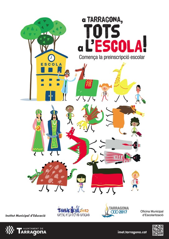 Aquest any, com a novetat, l’Institut Municipal d’Educació de Tarragona impulsa una campanya de sensibilització amb l’objectiu d’arribar a totes les famílies amb infants que han d’iniciar P3. Amb l’eslògan “A Tarragona, tots a l’escola”, i la imatge dels principals elements del seguici de les festes, es pretén fer present a les famílies el moment i el procés de la preinscripció escolar i donar a conèixer els serveis que els poden ajudar en la petició de plaça.