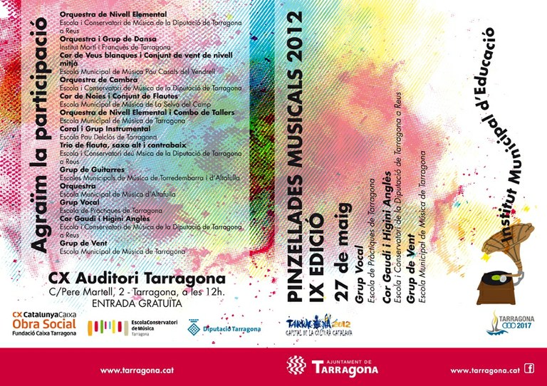 Finalitza el cicle de concerts de les Pinzellades Musicals amb la participació de l'Escola de Pràctiques de Tarragona, el Conservatori de la Diputació de Tarragona a Reus i l'Escola Municipal de Música de Tarragona.