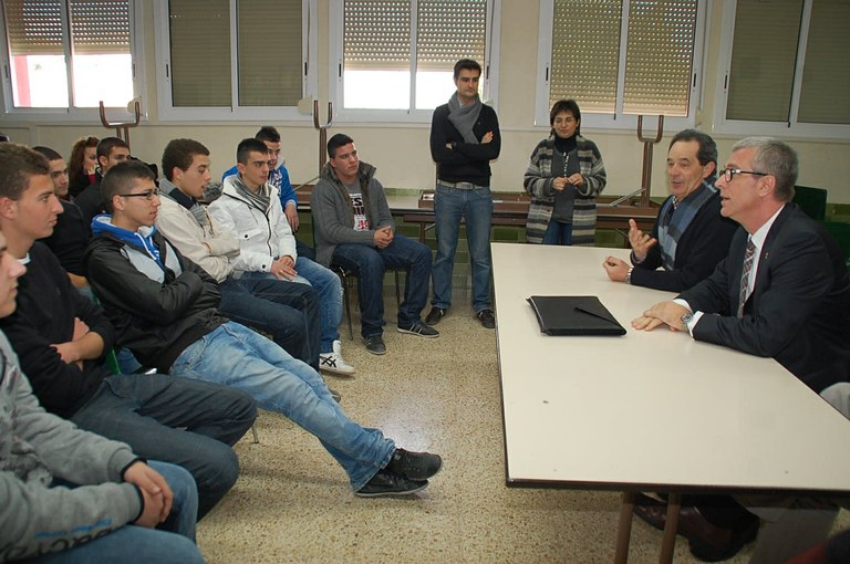 La visita de Ballesteros ha acabat amb una xerrada amb els representants d’alumnes del segon cicle d’ESO, Batxillerat i Cicles Formatius. Els alumnes del col•legi li han preguntat per la celebració dels Jocs Mediterranis 2017 i la seva repercussió a la ciutat. L’alcalde ha explicat que “és un projecte que ens farà créixer cap al futur. És un salt endavant que Tarragona organitzi un esdeveniment esportiu que situï Tarragona al món. En definitiva, és una gran excusa per créixer”. Altres de les preguntes que han fet els estudiants han estat sobre qüestions relacionades amb l’EMT i la gratuïtat dels autobusos municipals pels jubilats i els escolars, la ubicació de l’estació de l’AVE i el tancament a les nits del CAP de Bonavista. Finalment, l’alcalde Ballesteros –en resposta als alumnes– ha recordat totes les inversions que s’han fet els darrers anys al barri. “El Parc de la Coma, l’acondicionament de l’avinguda Tarradellas, l’ascensor al centre cívic del bari, el poliesportiu de Bonavista, entre d’altres, són inversions històriques al barri”. I ha afegit: “Però l’autèntica transformació es viurà amb la nova gran zona poliesportiva i l’arribada de l’Ikea, que transformarà Ponent”.
