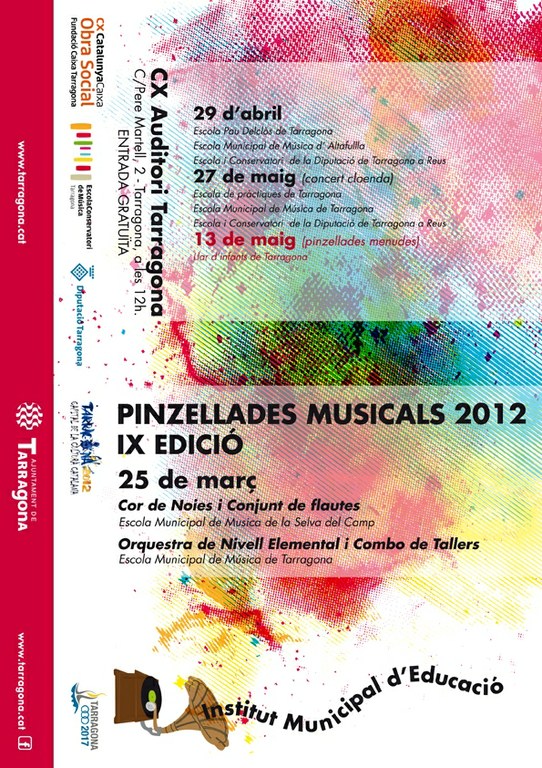 La programació de “Pinzellades musicals 2012”, que va començar el passat 22 de gener ofereix un total de sis concerts amb periodicitat mensual. Tots ells se celebren a l’Auditori Fundació Caixa de Tarragona a les 12 h.