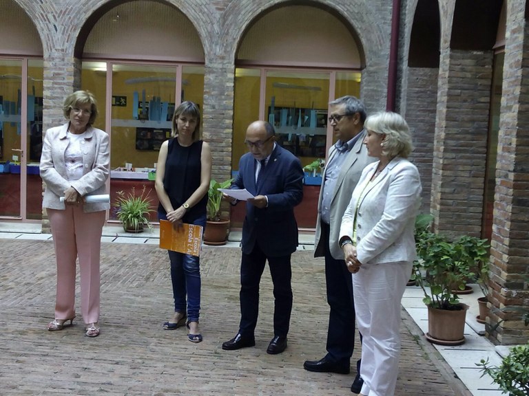 Foto: A l’acte hi van assistir –d’esquerra a dreta- la directora de Serveis Territorials d’Ensenyament, Àngels Gonzalez; la directora de l’escola l’Arrabassada, Sònia Sabidó; el conseller d’educació de l’Ajuntament de Tarragona, Francesc Roca; el director de l’IMET, Carles Cepero, i la inspectora d’Ensenyament, Rosa Maria Codines.