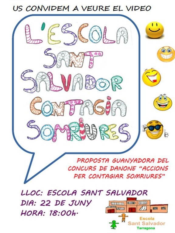 Els alumnes de 4t. B i C de l’escola Sant Salvador han guanyat el Concurs de la Danone de Catalunya: "CONTAGIEM SOMRIURES". La iniciativa va sorgir a partir de la visita a la Danone, on es van engrescar a participar en el concurs presentant una proposta de realització d'un vídeo fent bromes a la gent del barri amb l'objectiu de provocar somriures. Durant aquests dies han estat realitzant la gravació pels carrers de Sant Salvador.
