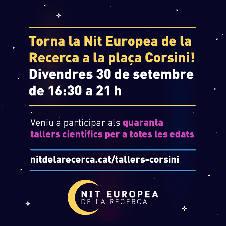 L’acte central de la Nit Europea de la Recerca arriba aquest divendres a la plaça Corsini de Tarragona. Prop de 200 investigadores i investigadors de la URV i dels instituts de recerca del territori han preparat una quarantena de tallers científics de diferents disciplines, amb l’objectiu d’omplir de ciència el carrer durant tota la tarda amb activitats interactives i lúdiques. La Nit Europea de la Recerca és un esdeveniment públic dedicat a la divulgació de la ciència que es fa a més de 300 ciutats de 30 països d’Europa alhora, i que la Universitat Rovira i Virgili coordina i organitza per cinquè any consecutiu a les comarques de Tarragona, amb el cofinançament de la Unió Europea.