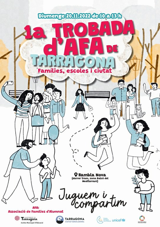 Tarragona celebrarà el Dia Universal dels Drets dels Infants aquest diumenge dia 20 de desembre amb la primera Trobada de les Associacions de Famílies d’Alumnat (AFA) de Tarragona. Amb la col·laboració de l’Institut Municipal d’Educació de Tarragona (IMET), la jornada comptarà amb nombroses d’activitats adreçades als infants i famílies de la ciutat i indrà lloc a l’últim tram de la Rambla Nova (tocant al Balcó del Mediterrani) a partir de les 10 h i fins a les 13 h.