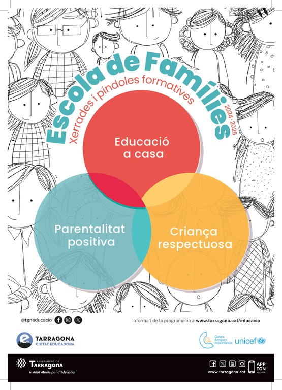 D’altra banda, l’Institut Municipal d’Educació i les Associacions de Famílies d’Alumnat de Tarragona ofereixen recursos formatius a les famílies com a eina d’intervenció preventiva per treballar competències relacionades amb la parentalitat positiva i la criança respectuosa.