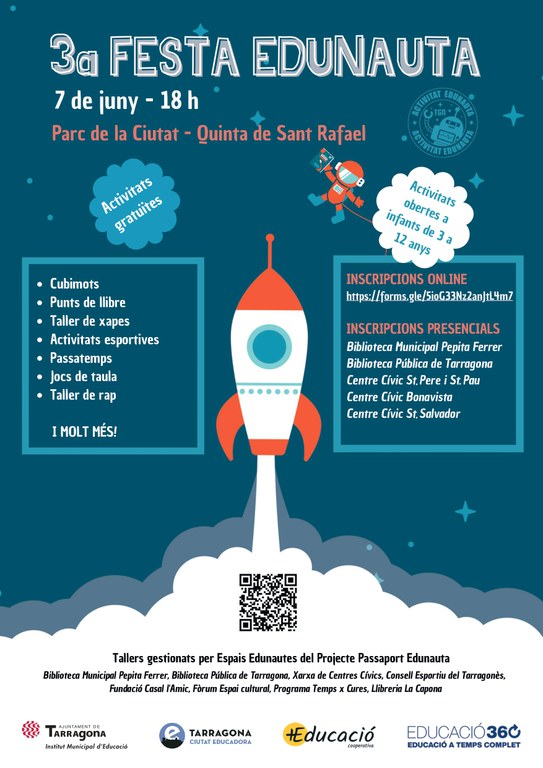 Les inscripcions per participar en la festa encara estan obertes en aquest enllaç del web de l'Ajuntament de Tarragona. En les activitats de lleure educatiu participarà la Xarxa de Centres Cívics de Tarragona, la Biblioteca Municipal Pepita Ferrer, la Biblioteca Pública de Tarragona, el programa Temps x Cures, el Consell Esportiu de Tarragonès, la Fundació Casal l'Amic, el Fòrum espai cultural i la llibreria La Capona.