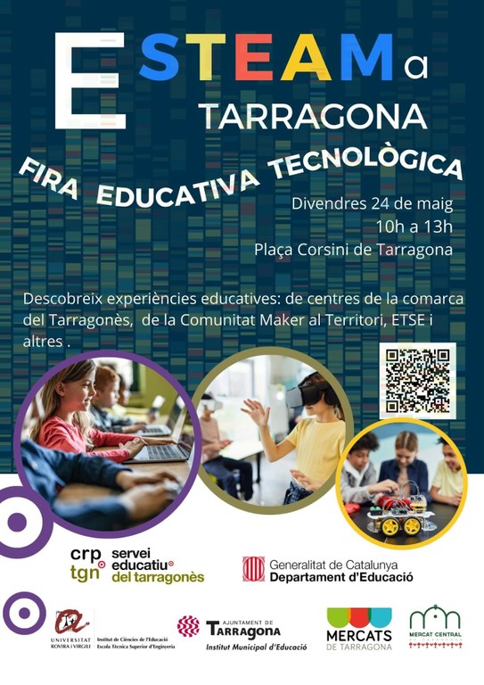 La plaça Corsini acull aquest divendres 24 de maig, la fira eSTEAMa Tarragona, una mostra educativa i tecnològica organitzada pel Centre de Recursos Pedagògics del Tarragonès amb el suport de l'Institut Municipal d'Educació de Tarragona (IMET), Mercats de Tarragona i l'Institut de Ciències de l'Educació (ICE) i l'Escola Tècnica Superior d'Enginyeria (ETSE) de la Universitat Rovira i Virgili (URV). La fira, que començarà a les 10 h i s'allargarà fins a les 13 h, comptarà amb la participació d'una quinzena de centres educatius del Tarragonès i s'obre a tota la ciutadania amb l'objectiu de divulgar pràctiques dins de l'àmbit STEAM -a les ciències, les tecnologies, les enginyeries, l'art i les matemàtiques-.