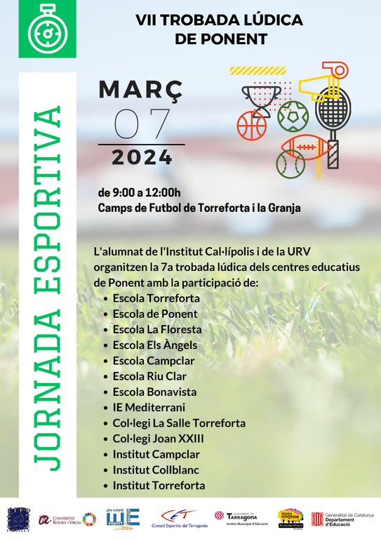 Es tracta d'una iniciativa emmarcada en el Pla Educatiu d'Entorn (PEE) impulsat per l'Institut Municipal d'Educació de Tarragona (IMET) i el departament d'Educació de la Generalitat de Catalunya, que tindrà lloc als camps de futbol municipals de Torreforta i de La Granja amb alumnat de sisè d'educació primària i de primer curs d'ESO. La jornada lúdica, dinamitzada pel professorat i alumnat de l'institut Cal·lípolis i de la Universitat Rovira i Virgili (URV), comptarà amb l'assistència del conseller d'Educació de l'Ajuntament de Tarragona, Berni Álvarez.