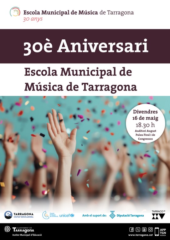 L’Escola Municipal de Música de Tarragona celebra aquest divendres 16 de maig el seu 30è aniversari amb un concert al Palau Firal i de Congressos de Tarragona a partir de les 18:30h.