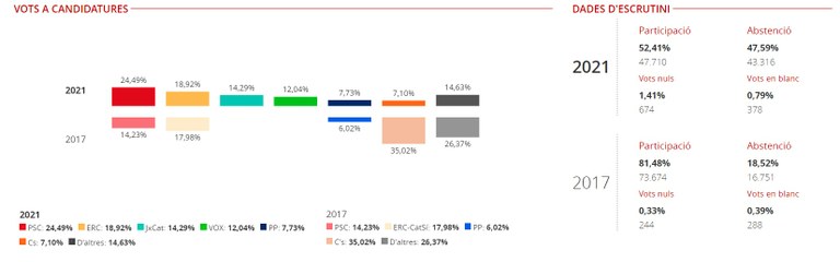 Consulteu els resultats a les eleccions al Parlament de Catalunya 2021 a les diferents zones de Tarragona (arxiu .XLSX).