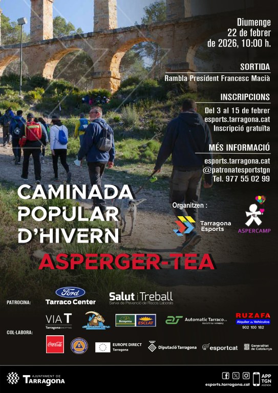 El diumenge 22 de febrer tindrà lloc la Caminada Popular d'hivern Asperger-TEA organitzada per Tarragona Esports en col·laboració amb ASPERCAMP, l'Associació Asperger-TEA del Camp de Tarragona, amb l'objectiu de donar a conèixer la síndrome d'Asperger-TEA, i promoure'n la sensibilització social.