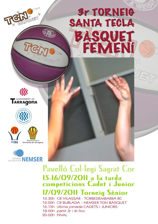 Aquest dimecres s’ha presentat la tercera edició del Torneig de bàsquet Femení Santa Tecla, que tindrà lloc els dies 15, 16 i 17 setembre al pavelló del col·legi Sagrat Cor de Tarragona. Aquesta competició compta amb la participació de set equips d’arreu de Catalunya. En l’edició d’ enguany s’ha ampliat la competició a les categories cadet i júnior.