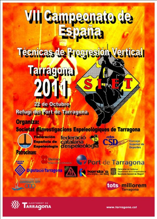 Aquest dissabte dia 22 d'octubre se celebra el VII Campionat d’Espanya de Tècniques de Progressió Vertical al Refugi del Port de Tarragona. L’esdeveniment està organitzat per la Societat d’Investigacions Espeleològiques de Tarragona (SIET) amb la col·laboració de la Conselleria d’Esports de l’Ajuntament.