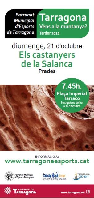 El Patronat Municipal d’Esports, seguint amb el programa “Tarragona, vens a la muntanya?” ha organitzat una sortida als Castanyers del fondo de la Salanca (Prades) que tindrà lloc el diumenge, 21 d’octubre.