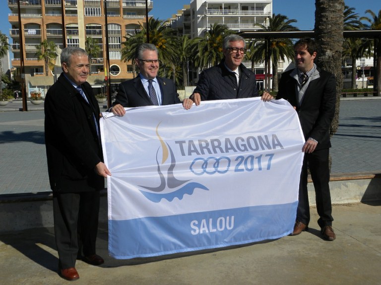 L’alcalde de Tarragona, Josep Fèlix Ballesteros juntament amb l'alcalde de Salou, Pere Granados, han hissat la bandera dels Jocs del Mediterrani 2017 a la platja de Llevant.