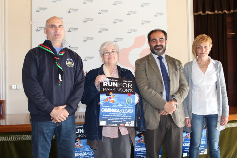 A la fotografia de Mauri i d’esquerra a dreta: Jordi Santolaria, coordinador del Grup Escoltes Salle de Torreforta (GELSTO); Maria Carme Martí, Presidenta Associació Parkinson de les comarques de Tarragona; Xavier Tarrés, tinent d’alcalde d’Esports i Cori Sancho, coordinadora de la caminada.