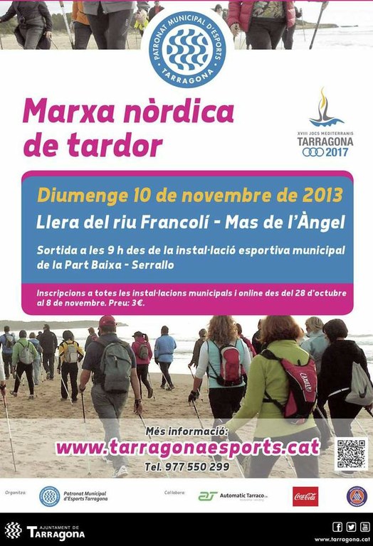 Aquest diumenge, 10 de novembre, el Patronat Municipal d’Esports de Tarragona celebrarà la segona Marxa Nòrdica de l’any, amb un circuit d’uns 11 quilòmetres aproximadament, molt planer, per la llera del riu Francolí, ideal per poder practicar la tècnica i al mateix temps també poder agafar velocitat, ja que és una zona planera i molt ampla.