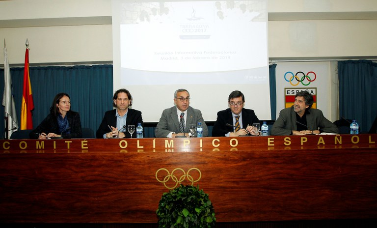 La seu del Comitè Olímpic Espanyol va acollir ahir una reunió entre l’organització de Tarragona 2017 i representants de les diferents federacions esportives participants en els Jocs Mediterranis. A la trobada hi van assistir el president del Comitè Olímpic Espanyol, Alejandro Blanco; acompanyat pel secretari general del COE i president de la Comissió Tècnica del Comitè Internacional dels Jocs Mediterranis, Victor Sánchez. Per la seva banda, la delegació tarragonina ha estat encapçalada pel director general dels Jocs, Ramon Cuadrat; acompanyat per la responsable de Voluntariat i Esports, Bito Fuster; i el responsable d’Operacions i Serveis, Ramon Pallejà.