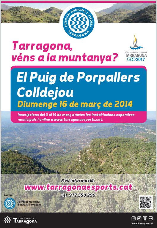 El Patronat Municipal d’Esports de Tarragona, seguint amb el programa “Tarragona, véns a la muntanya?” ha programat una sortida que tindrà lloc el diumenge 16 de març a El Puig dels Porpallers (Colldejou). Es tracta d’un Itinerari de 10 quilòmetres de recorregut i un desnivell positiu acumulat de 300 metres. Les inscripcions estan obertes i es poden fer on-line al web del Patronat.