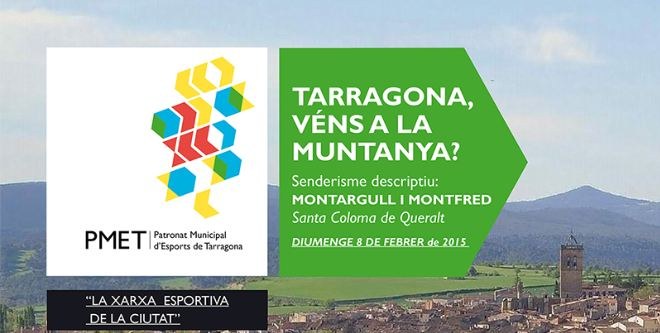 El Patronat Municipal d’Esports de Tarragona (PMET), seguint les sortides de senderisme descriptiu i dins del programa "Tarragona, véns a la muntanya?", ha previst la propera sortida el diumenge, 8 de febrer, a Montargull i Montfred (Santa Coloma de Queralt).