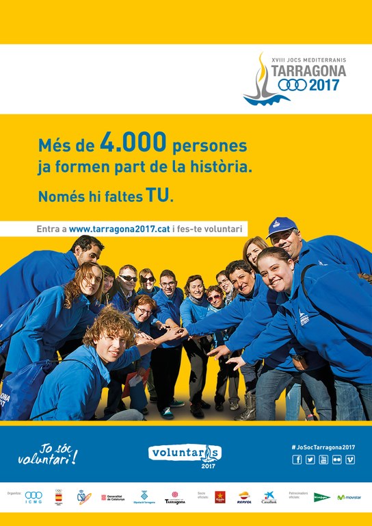 Les inscripcions a la borsa de voluntariat dels Jocs Mediterranis segueixen obertes al web dels Jocs: www.tarragona2017.cat/fes-te-voluntari/