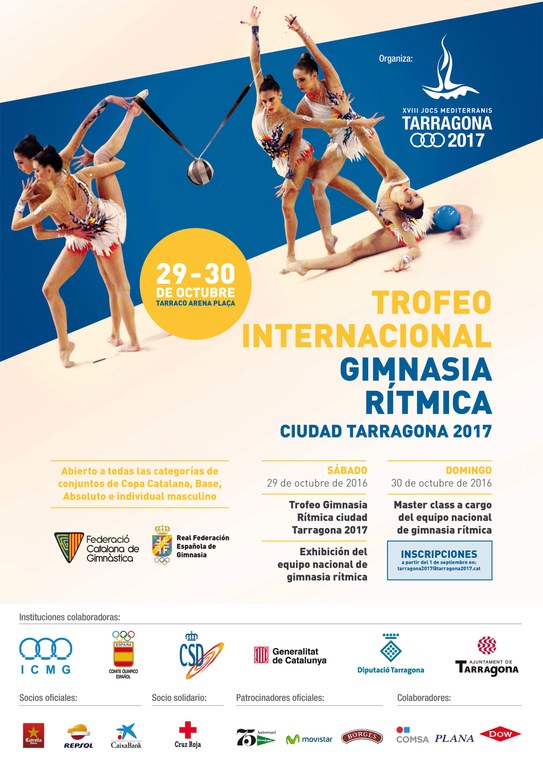 El "Trofeu Internacional Ciutat de Tarragona 2017" es disputarà el dissabte 29 d'octubre i està obert a totes les categories de conjunts de Copa Catalana, Base, Absolut i Individual masculí de gimnàstica. Cal destacar que el Trofeu comptarà amb la participació de l'equip espanyol de gimnàstica rítmica qui oferirà una exhibició, el mateix dissabte, i una classe magistral de l'equip el diumenge 30 d'octubre.