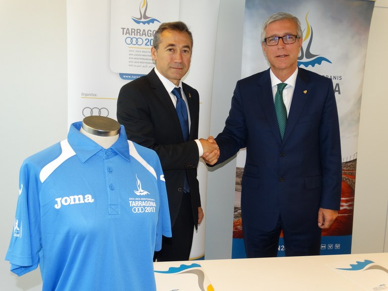 La signatura de l'acord s'ha celebrat a les oficines dels Jocs Mediterranis i ha comptat amb la presència de l'alcalde i president del Comitè Organitzador de Tarragona 2017, Josep Fèlix Ballesteros; i del director general de Joma, Alberto López González.