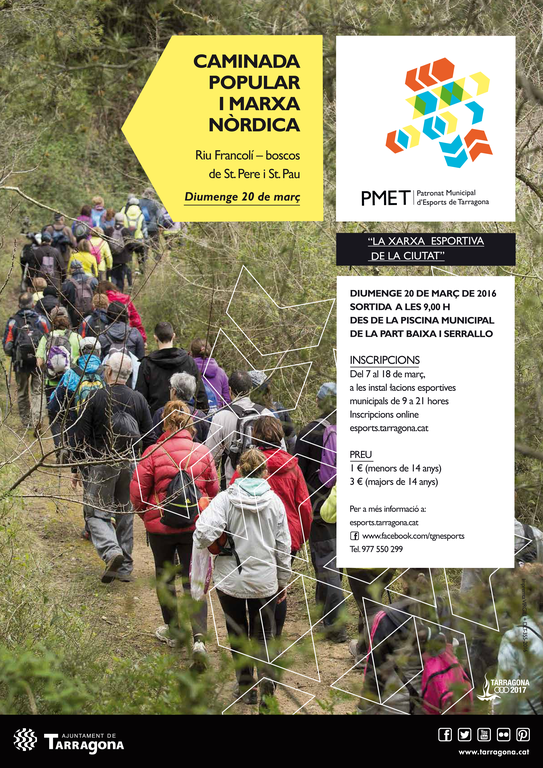 El diumenge 20 de març se celebrarà la Caminada popular i marxa nòrdica 2016, organitzada pel Patronat Municipal d’Esports de Tarragona.