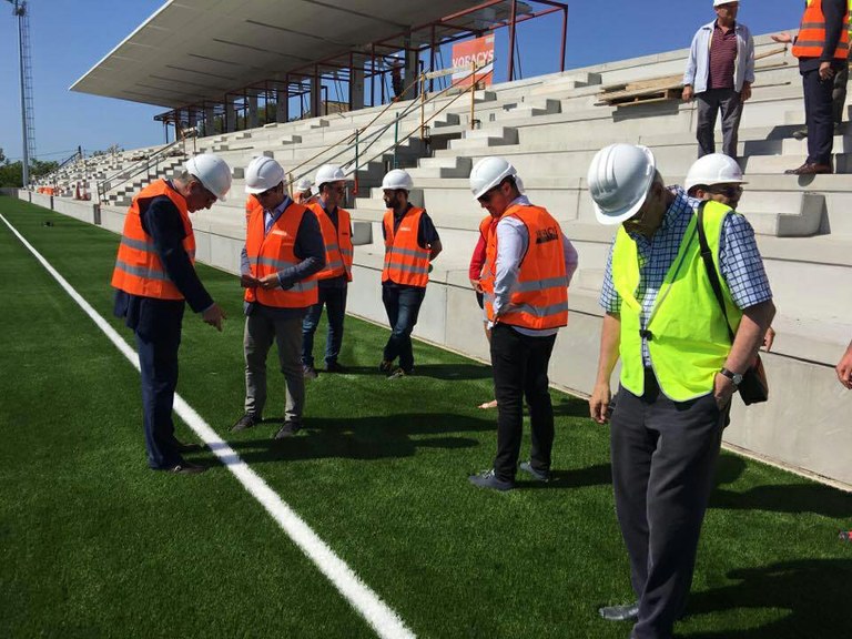 L'Alcalde Ballesteros visita les obres del camp de futbol municipal de Calafell, seu dels Jocs Mediterranis