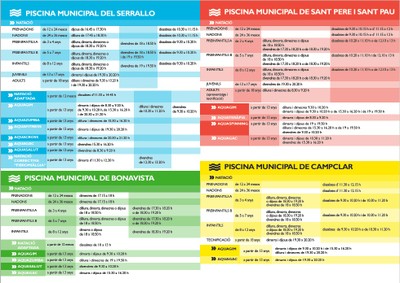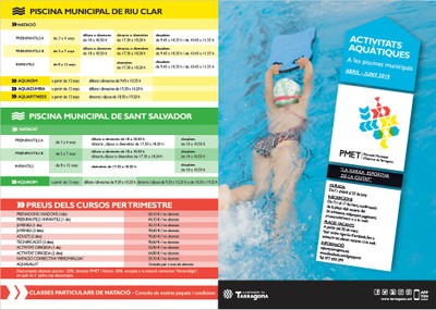 Entre les activitats ofertes hi ha cursos de natació per a totes les edats, des de prenadons a adults, i activitats dirigides com aquagim, aquazumba o aquaspinning, entre d'altres. Les propostes es reparteixen entre les sis piscines municipals: Part Baixa - Serrallo, Bonavista, Sant Pere i Sant Pau, Campclar, Riu Clar i Sant Salvador.