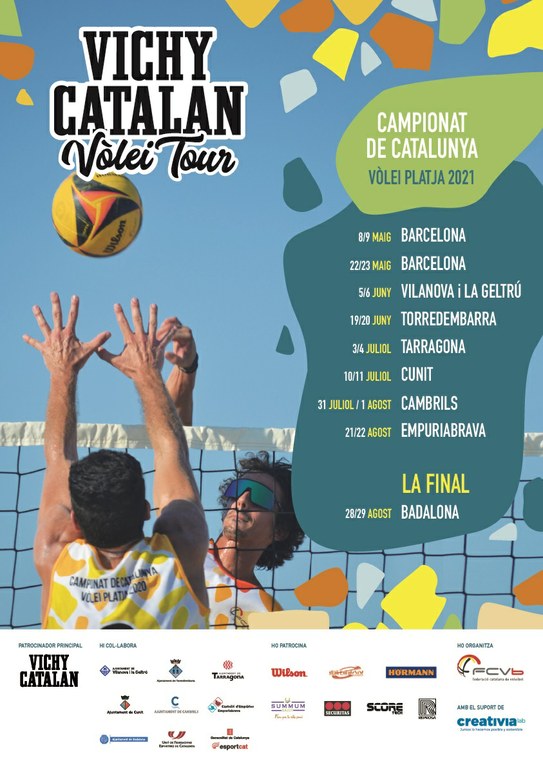 La competició s’allargarà fins a finals del mes d’agost amb la celebració de vuit proves i la gran final, que coronarà els nous campions de Catalunya de vòlei platja. Després de les dues primeres proves a les instal·lacions fixes de vòlei platja del CM Tennis Vall d’Hebron, el Vichy Catalan sortirà a recórrer la costa catalana. El mes de juny passarà per Vilanova i la Geltrú i Torredembarra. El mes de juliol farà parada a Tarragona, Cunit i Cambrils. Finalment, a l’agost es disputarà l’última prova puntuable a Empuriabrava, per deixar pas el 28 i 29 d’agost a la gran final, que tindrà lloc a la platja del Pont del Petroli de Badalona.