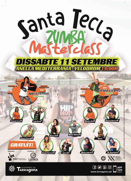 El Patronat Municipal d’Esports (PMET) organitza una masterclass de zumba per les festes de Santa Tecla. La cita serà el proper dissabte 11 de setembre a partir de les 19 h al velòdrom de l’Anella Mediterrània i la inscripció és gratuïtes. Per assistir-hi cal omplir una butlleta que estarà disponible els dijous 2 i 9 de setembre al mateix recinte a l’hora que es realitza l’activitat “Ens movem a l’aire lliure” i també el mateix dia 11, 30 minuts abans de l’inici de l’activitat.