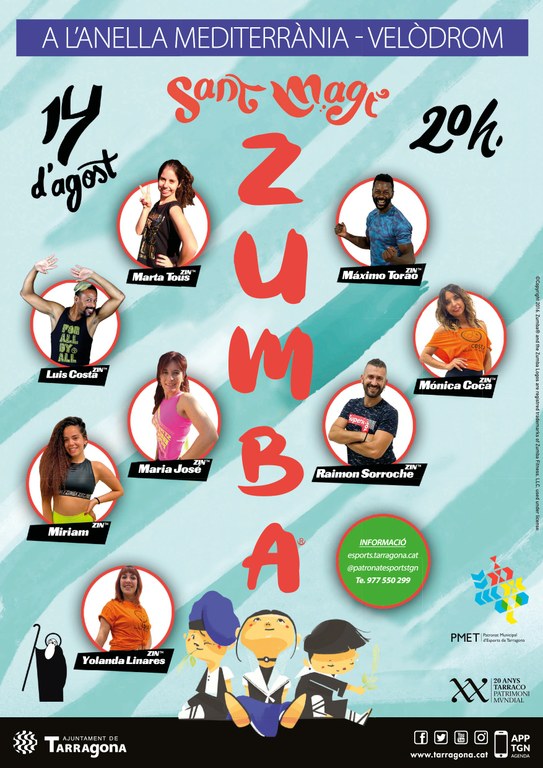 El Patronat Municipal d’Esports de Tarragona (PMET) organitza una masterclass de zumba per les festes de Sant Magí. La cita serà el proper dissabte 14 d’agost a partir de les 20 h al velòdrom de l’Anella Mediterrània.