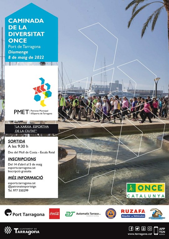 La inclusió és un dels elements centrals del programa anual d’activitats a l’aire lliure del Patronat Municipal d’Esports de Tarragona (PMET) i així ho demostra el fet que set de les nou proves que organitza són inclusives. És el cas de la Caminada de la Diversitat - ONCE, que tindrà lloc als carrers del centre de la ciutat i el Port de Tarragona el proper diumenge 8 de maig. Les inscripcions són gratuïtes i es poden fer fins al dia 5 de maig a esports.tarragona.cat.