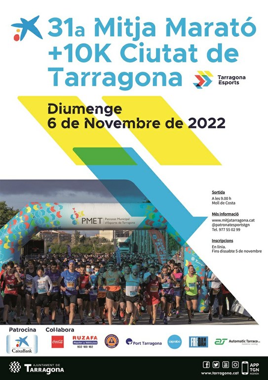 Gran èxit de convocatòria de la 31a edició de la Mitja Marató + 10K “Ciutat de Tarragona”. Les inscripcions han arribat al 100 % i es preveu que siguin 1.500 els corredors i corredores els que participin enguany en aquest emblemàtic esdeveniment del calendari esportiu tarragoní. Dels 1.500 participants, 833 s’han inscrit a la Mitja Marató i 667 als 10K.
