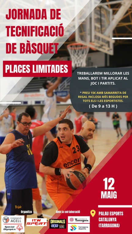 El Palau d’Esports Catalunya acollirà, aquest diumenge 12 de maig, un campus de tecnificació de bàsquet adreçat a esportistes amb discapacitat intel·lectual. La jornada, que començarà a les 9 h i s’allargarà fins a les 13 h, és organitzada per la Federació Acell i ITW SPORT amb la col·laboració de Tarragona Esports, el Club Bàsquet Tarragona, el Club Esportiu Solc i l'equip Originals CBT-Solc.