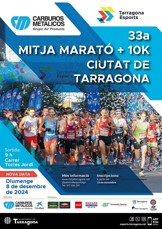 Per segon any consecutiu, Carburos Metálicos, una companyia líder al sector de gasos industrials i medicinals a Espanya que forma part del grup Air Products, és la principal patrocinadora de la Mitja Marató + 10K Ciutat de Tarragona. L'esdeveniment també compta amb el patrocini de La Caixa i amb la col·laboració de Bon Preu i Esclat, Coca-Cola, Ruzafa, Automàtic Tarraco, Port de Tarragona, Hyundai, Tarragona Turisme, Protecció Civil i voluntaris Apifv, Return to play, l’Associació de veïns del Port, el Club Atletisme Tarragona i Club Tennis Tarragona.